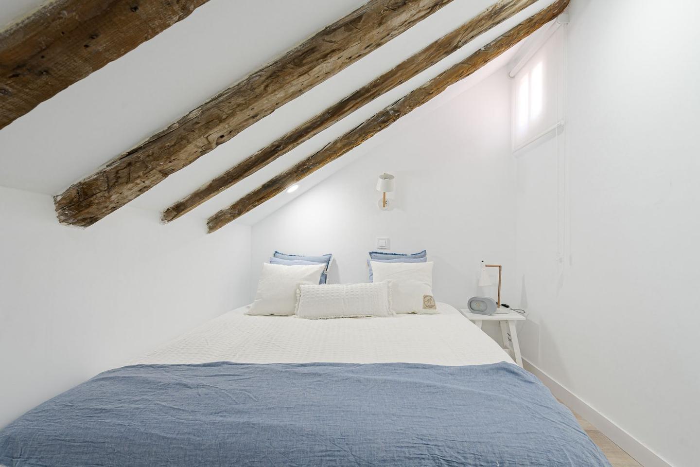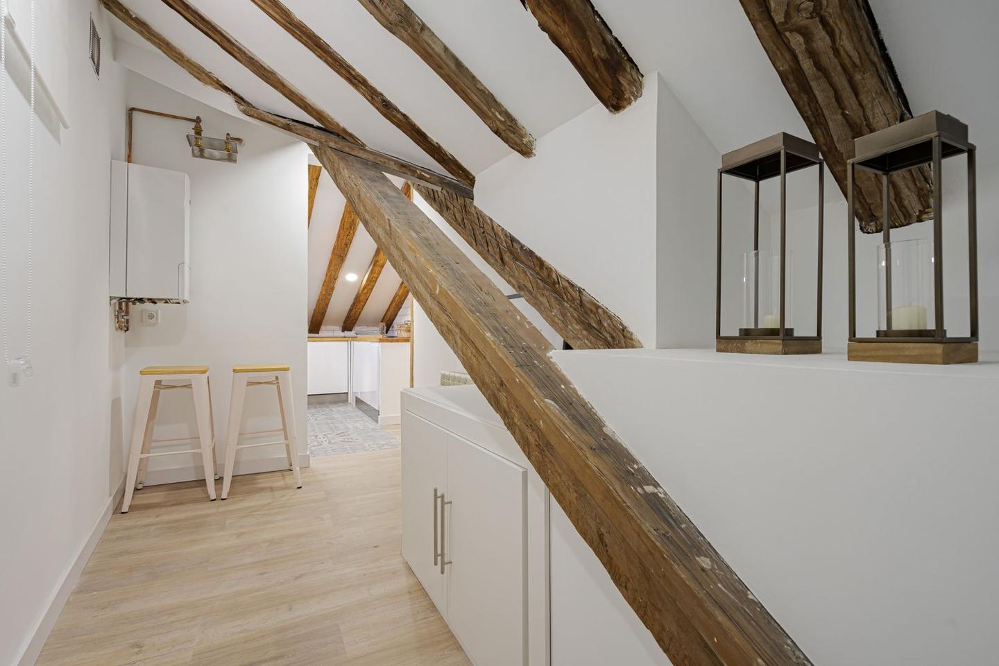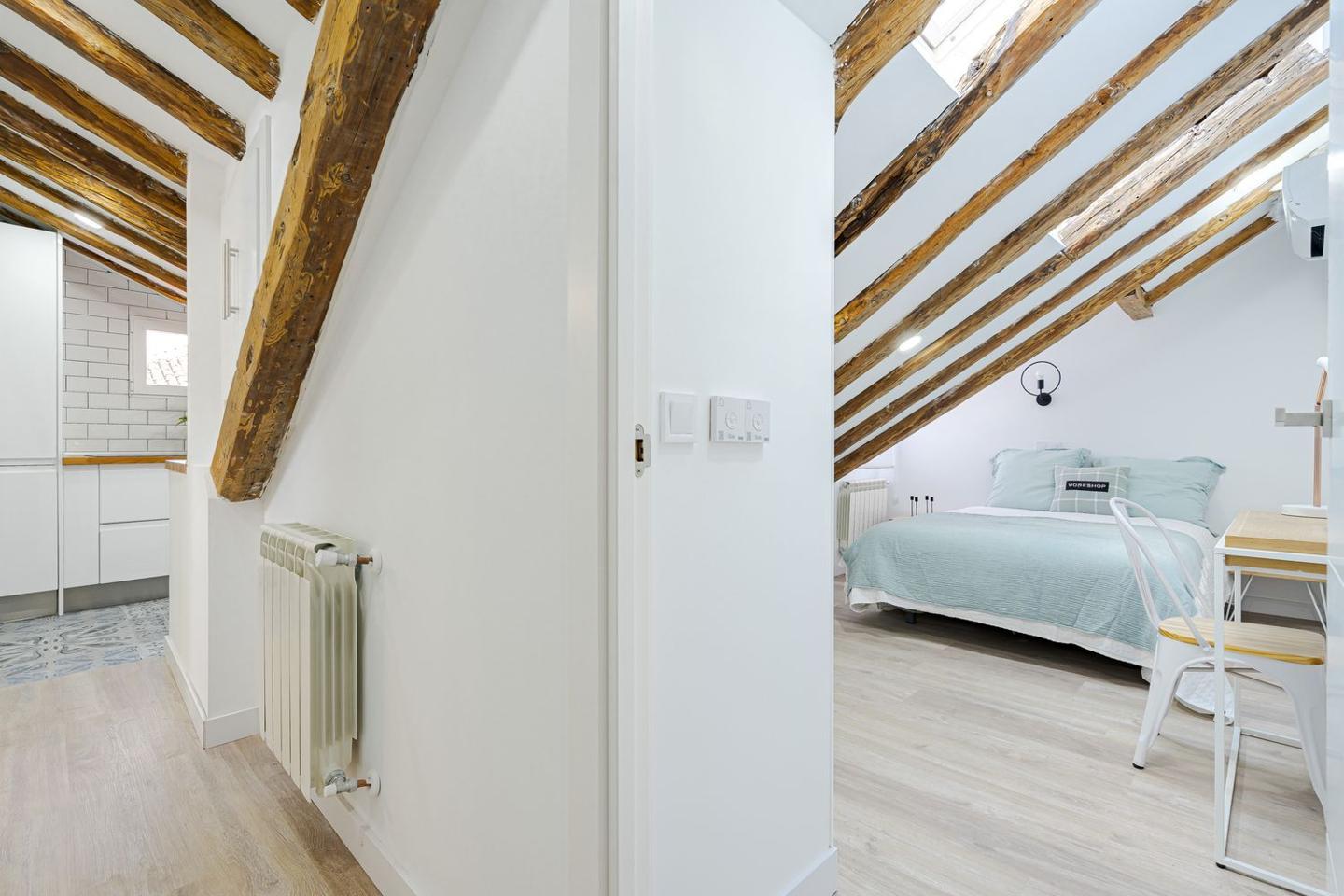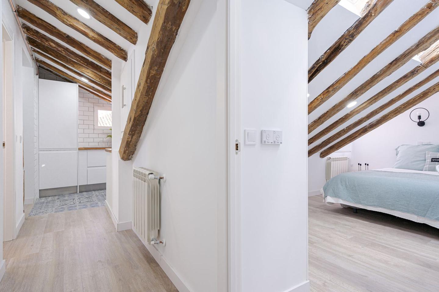 Sevenday presenta este espectacular ático abuhardillado en pleno corazón de Malasaña combina estilo urbano, luz natural y un diseño funcional, ofreciendo una vivienda única para vivir o trabajar en una de las zonas más vibrantes de Madrid.La vivienda cuenta con una superficie de 83 m² que ha sido optimizada para permitir una circulación fluida entre estancias y una excelente sensación de amplitud. Al entrar, se aprecia una atmósfera luminosa, con espacios amplios y abiertas, perfectos para un estilo de vida cosmopolita.El salón es el centro de la vivienda, un espacio versátil que puede adaptarse tanto a zona de estar como a comedor o área de trabajo. Su configuración abuhardillada aporta carácter y calidez, integrándose con un ambiente moderno y acogedor.La cocina, equipada de forma práctica, se sitúa de manera funcional dentro del conjunto del salón, facilitando la vida cotidiana.El ático dispone de dos dormitorios confortables, diseñados para ofrecer tranquilidad y descanso, con suficiente espacio para almacenaje y luz natural, lo que los convierte en espacios íntimos dentro de la vivienda.El baño completo, bien equipado, sigue la línea actual del resto de la vivienda, con acabados modernos que combinan estética y funcionalidad.Situado en la quinta planta interior de un edificio clásico sin ascensor, este piso reformado destaca por su estética contemporánea y distribución bien resuelta.